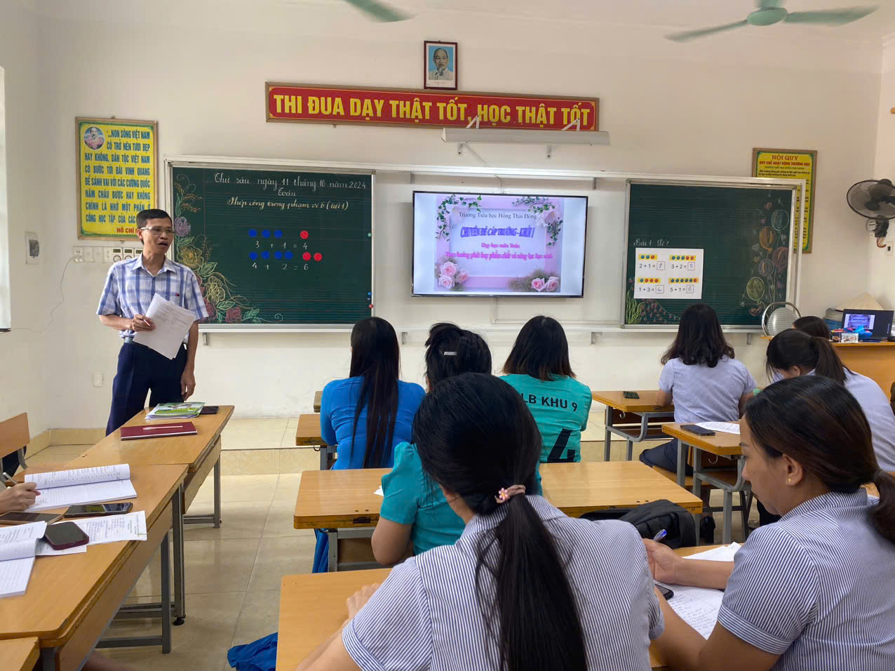 Thực hiện kế hoạch chuyên môn tháng 10, chiều ngày 11/10, Trường Tiểu học Hồng Thái Đông tổ chức chuyên đề "Dạy học môn Toán theo hướng phát triển phẩm chất và năng lực học sinh".